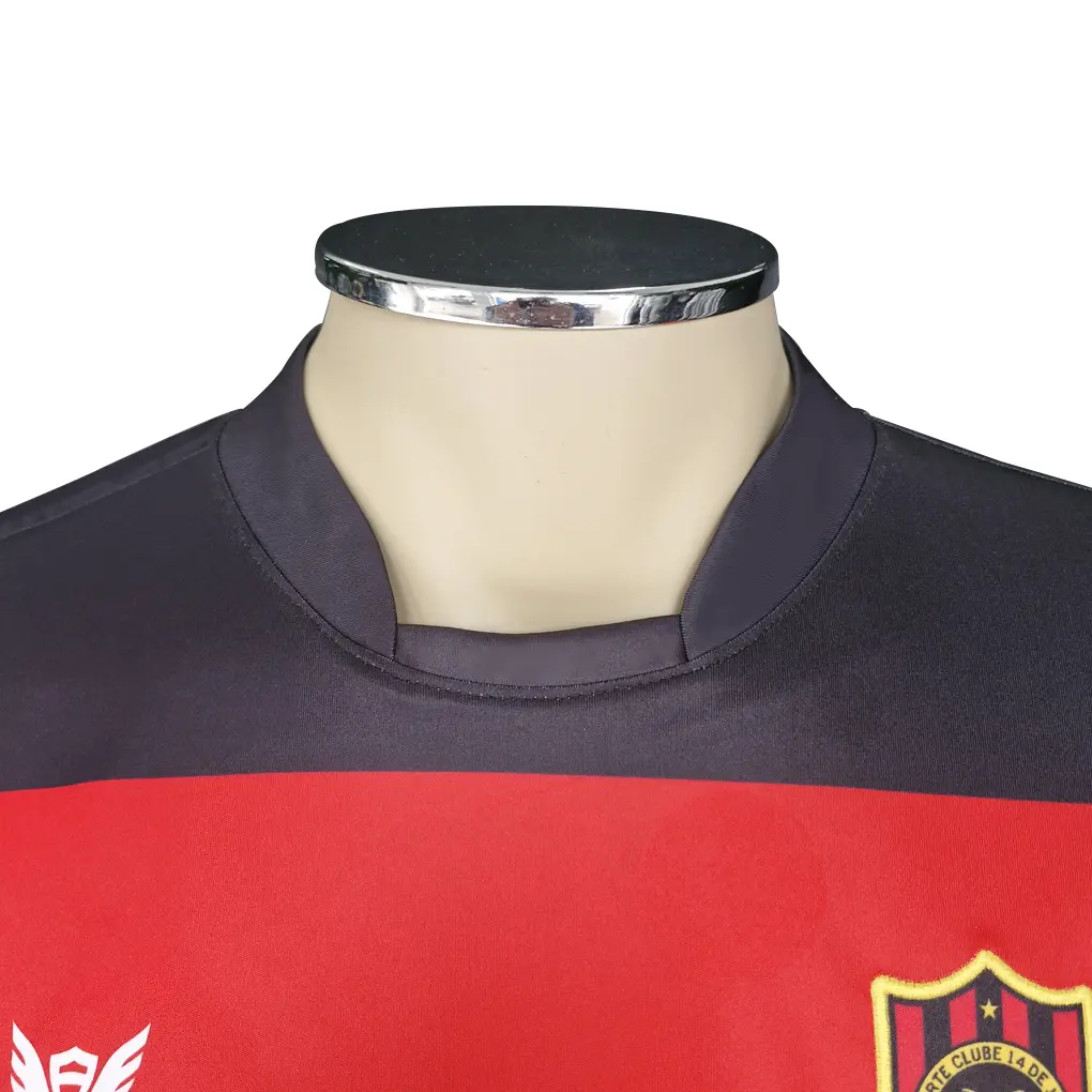 A gola retrô sob medida da ASA Sports combina visual clássico com desempenho atual. Cada peça recebe gola dimensionada para o seu tamanho, equilibrando altura, comprimento e abertura do decote para um formato anatômico que veste melhor e evita ondulações. O conjunto de ilhós funcional e cordão adiciona personalidade e evidencia o estilo retrô, sem abrir mão da padronização e da durabilidade em produção.
