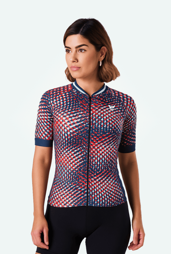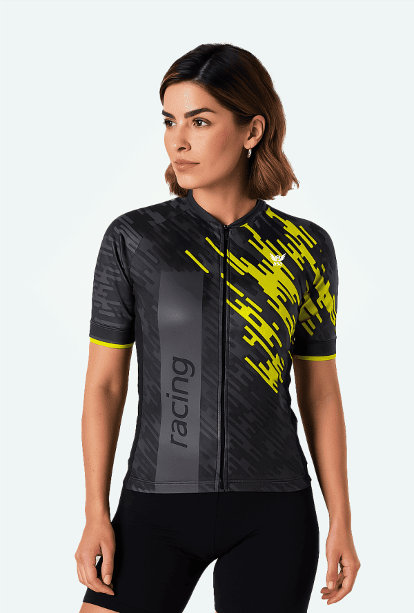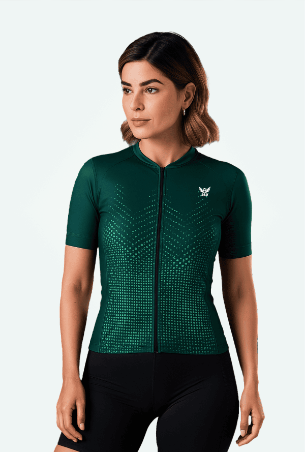 Projetada para grupos femininos que treinam semanalmente ou participam de competições, sua modelagem justa ao corpo contribui para melhor aerodinâmica, reduzindo a resistência do vento sem comprometer a mobilidade.