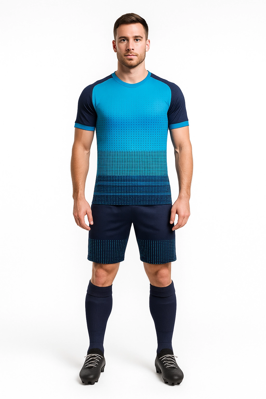 O Conjunto ELLITE é o fardamento de padrão profissional para os mais exigentes. Inclui camisa numerada, calção e meião em diversas cores. Produzido com malhas dry especiais — lisa, texturizada, telinha ou com elastano — e sublimação total em alta definição.